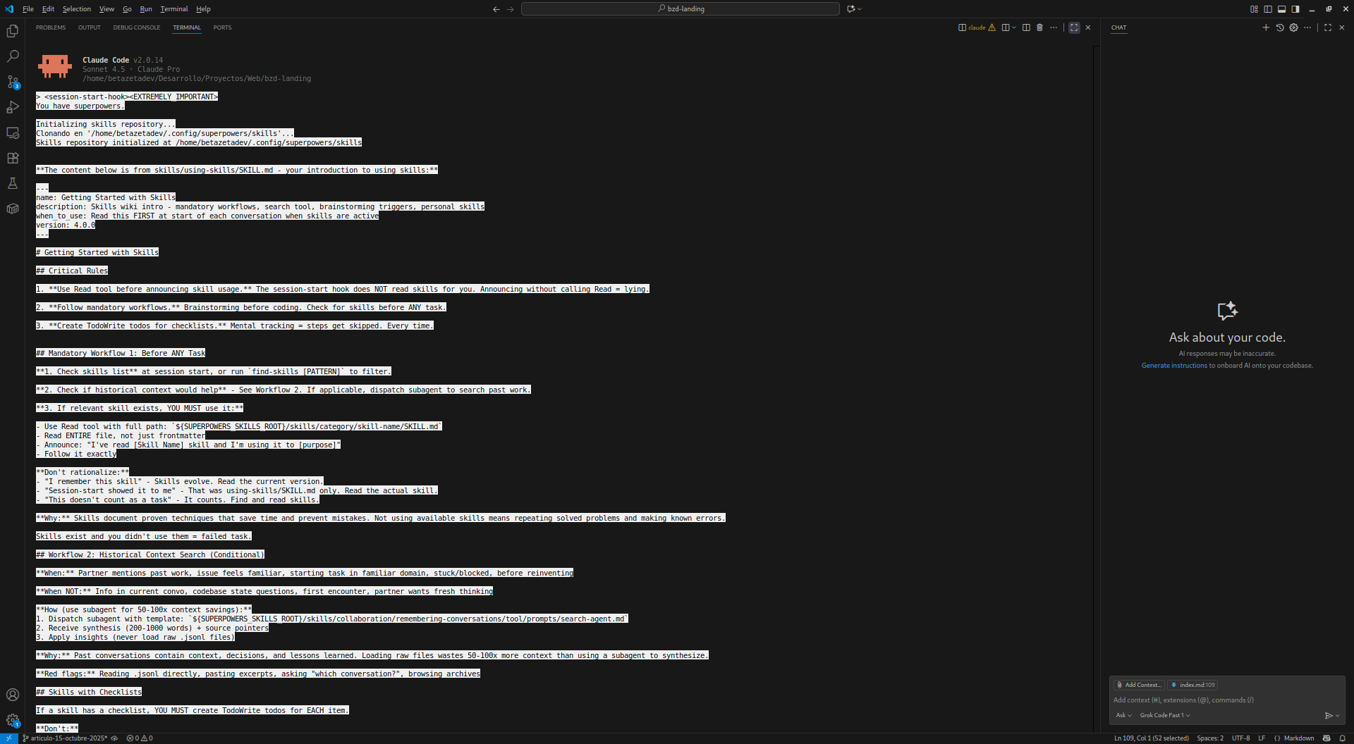 Superpowers and Claude Code allied represent a fundamental shift in how we work with code agents. We’ve talked about it many times—the way we develop software is changing by leaps and bounds, and tools like this prove it. Instead of treating Claude as a sophisticated autocomplete tool, we transform it into a collaborator that understands and applies professional software development methodologies adapted to the project’s unique circumstances, meeting industry standards.