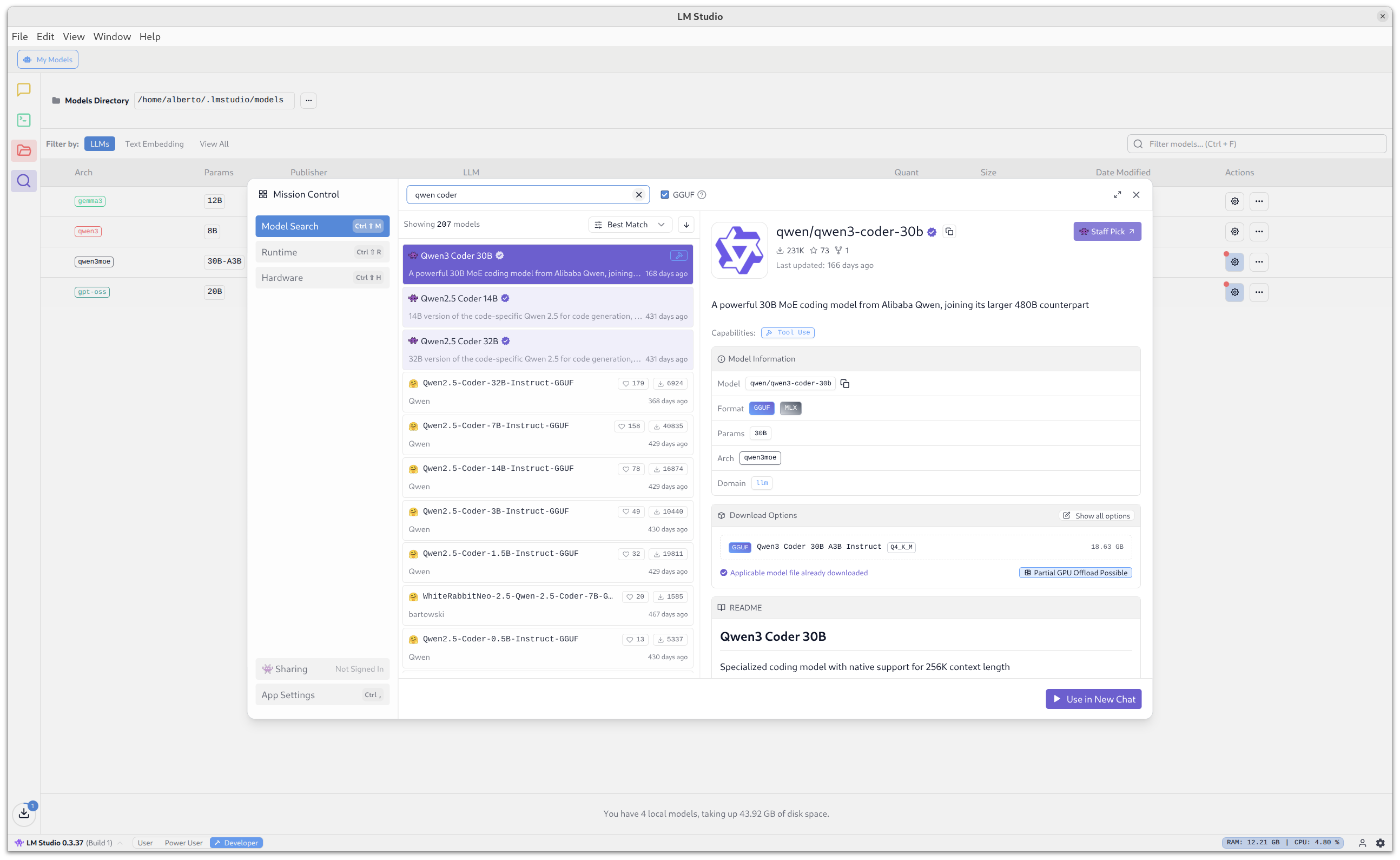 La flexibilidad de LM Studio te permite tener ambos modelos instalados y cambiar entre ellos según la tarea que tengas entre manos.