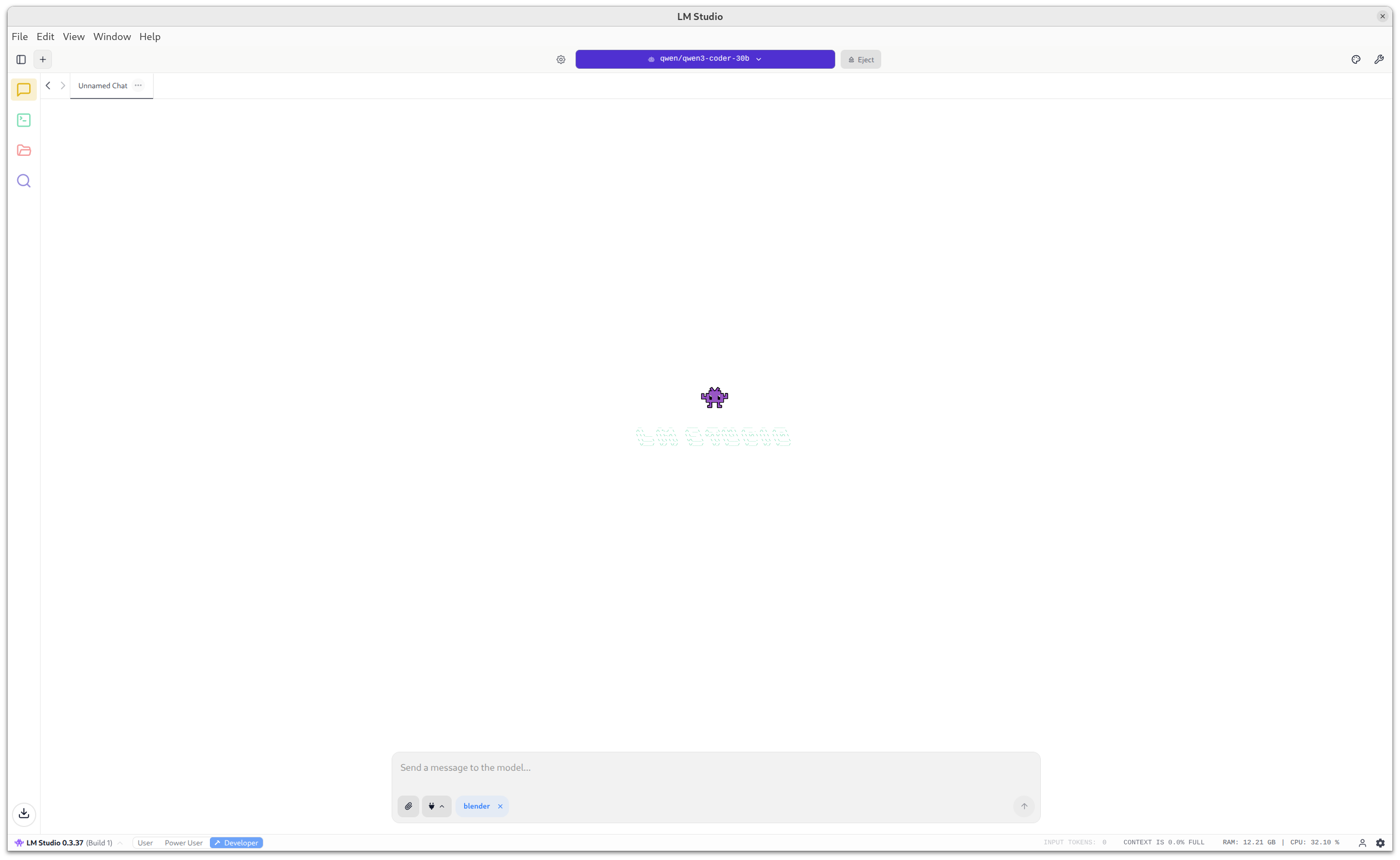 Una vez descargado, ve a la sección Chat y selecciona el modelo QWEN 3 Coder en el selector de modelos de la parte superior.