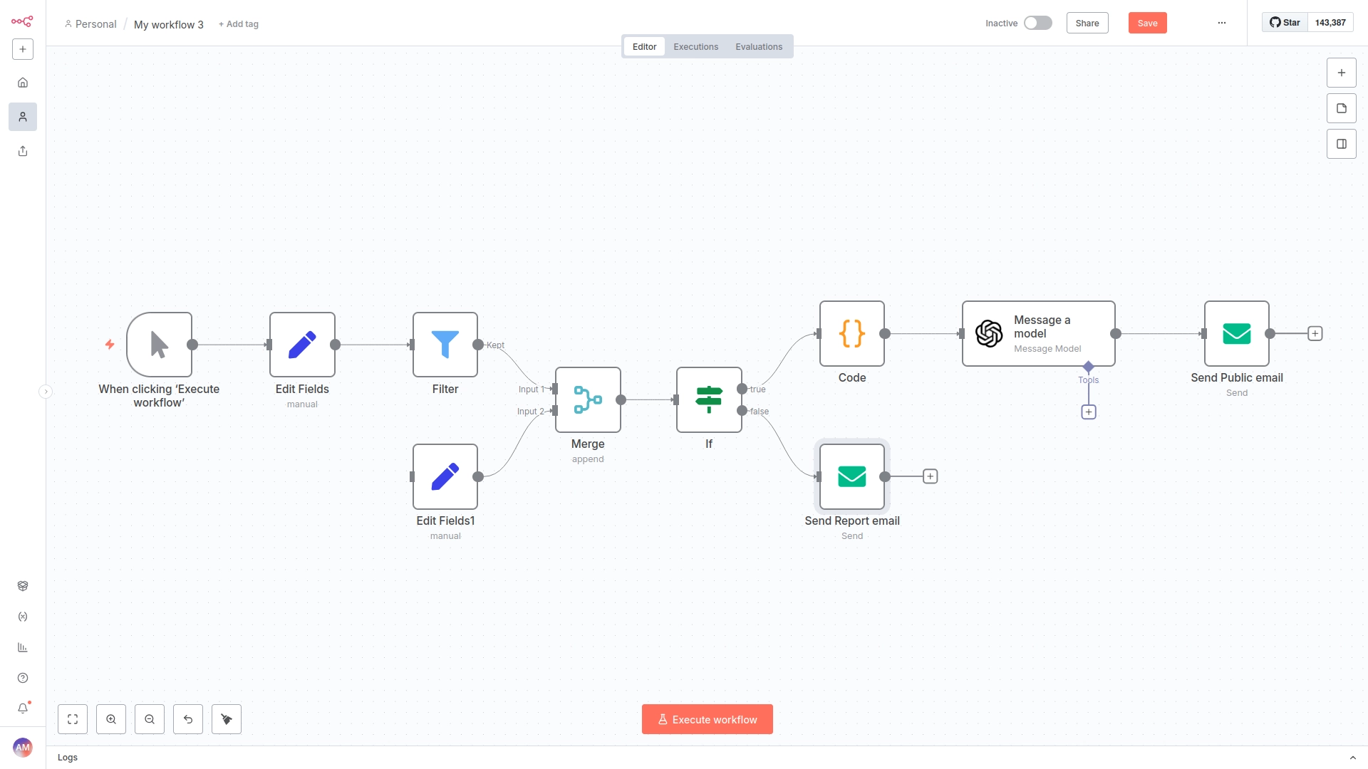 Aunque ya hemos hablado un poco más en detalle de algunos de los principales nodos, no está de más mencionar de nuevo que n8n incluye cientos de nodos especializados, en la mayor parte del trabajo en automatizaciones profesionales se utilizan un conjunto relativamente pequeño de nodos fundamentales: