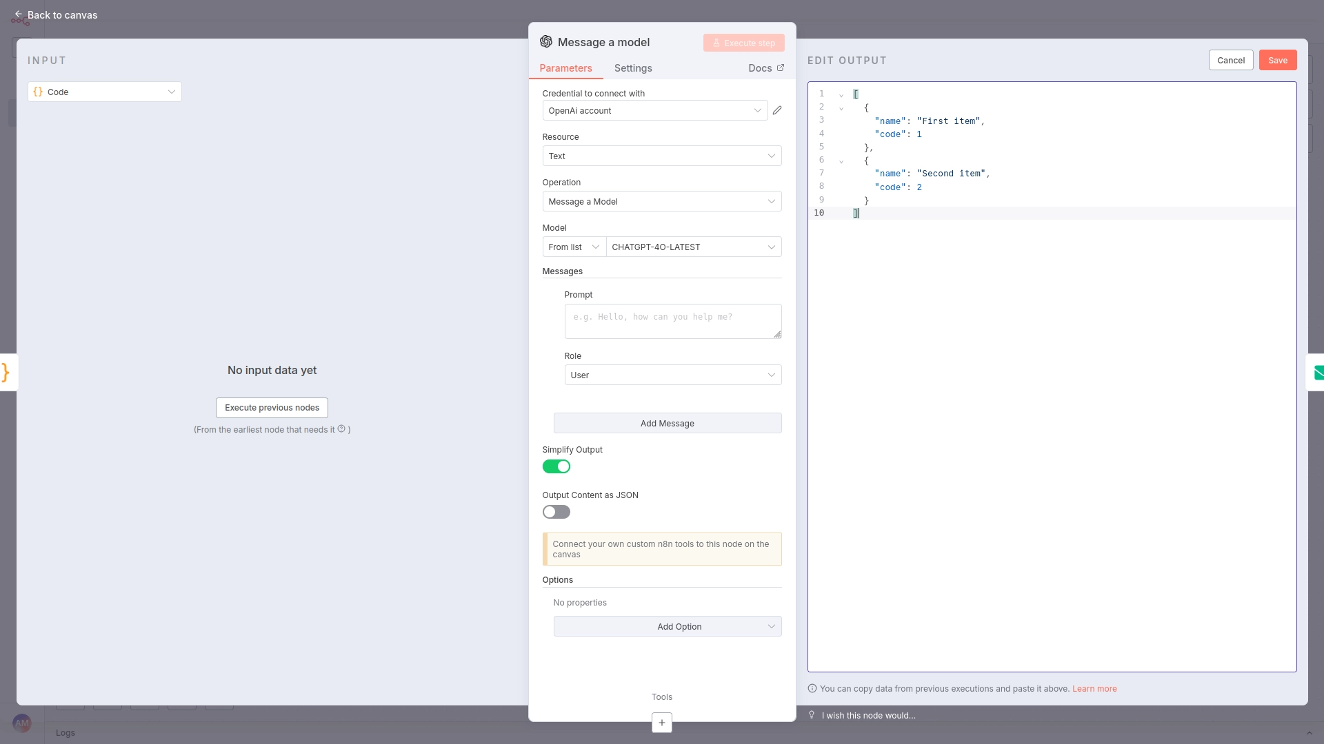 Esto es especialmente importante cuando trabajamos con nodos de IA o APIs que tienen costo por uso. Una sola prueba de un nodo de IA puede costar desde algunos céntimos hasta unos euros, costos se acumulan rápidamente durante el desarrollo y testing.